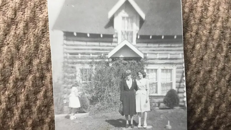 Archie and some of his brothers built this log house for Ada after the family home burned. Ada was widowed in 1919. She and her granddaughters, Ann and Jerie Ferris are with her in front of her home.