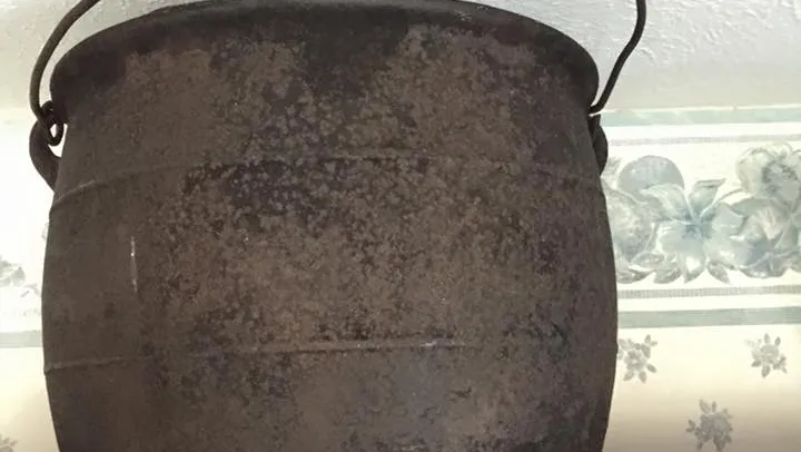 Ada always cooked on a wood burning stove. Jerie says she always had beans cooking on the wood stove. I have her black cast iron pot with little feet that can be used over a campfire or on the stove. I also have her iron kettle, flat on the bottom, for the stove top.